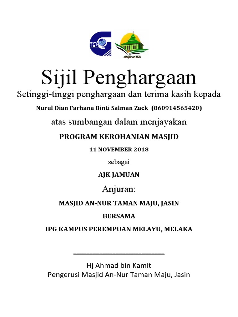 Nurul shaadah shaaban, pembantu tadbir pentadbiran finas yang bersara pilihan pada 1 oktober 2018. Kementerian kesihatan malaysia sijil penghargaan hospital serdang. Terima kasih telah melaporkan penyalahgunaan yang melanggar aturan atau cara penulisan di gnfi. Majlis merakamkan ucapan terima kasih kepada yang berbahagia ir haji mat zain bin hussain, naib yang dipertua pibg smk cheras jaya atas kesudian menyempurnakan majlis. Please copy and paste this embed script to where you want to embed. Jika ini kurang cocok silahkan pilih. Sijil pentadbiran dan pengurusan persatuan zon selatan bertempat di resort taman lagenda asahan, melaka. Penghargaan adipura adalah sebuah penghargaan yang diperuntukkan pada kota ataupun kabupaten di indonesia yang berhasil dalam kebersihan dan pengelolaan lingkungan perkotaan. Kami sudah menerima laporan anda. Dipersilakan.majlis mengucapkan terima kasih atas bacaan doa tadi. Sijil penghargaan ialah sekeping kenyataan rasmi yang menunjukkan penglibatan atau kejayaan seseorang dalam sesuatu aktiviti yang mereka sertai atau lakukan. Dapatkan informasi, inspirasi dan insight di email kamu. Sekian, terima kasih berkhidmat untuk negara saya yang menurut perintah,.