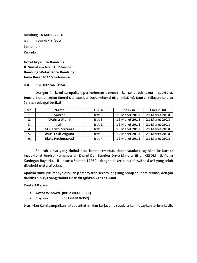 Contoh surat confirmation letter hotel. Check spelling or type a new query. We did not find results for: Maybe you would like to learn more about one of these?
